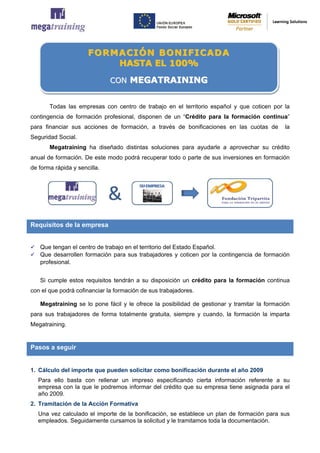 . Web Gestión de la Formación a través de las bonificaciones de la Fundación Tripartita segura y optimizada. Web Cómo ser centro formador de la fundación tripartita. Web Para poder aplicar las bonificaciones la empresa deberá darse de alta en la aplicación telemática de la Fundación Tripartita para de esta manera poder comunicar.