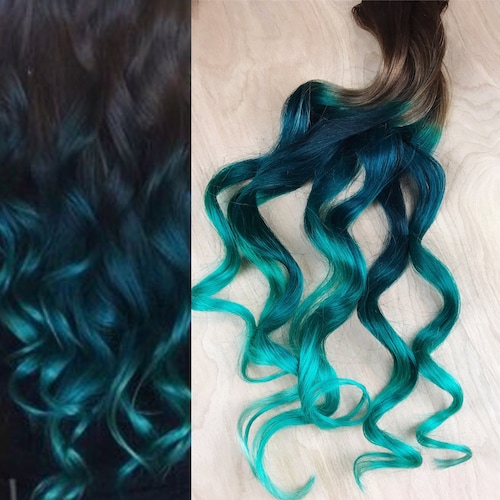 Teal Hair Green Hair Ombre Dip Dyed Hair Clip In Hair Etsy Uk